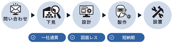 ナカモトのように、設備・架台・歩廊・板金製作まで対応できる会社が関わると、単なる機械導入ではなく、現場に合った構造改善がしやすくなります。